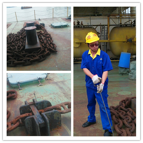 严德平一直善于动脑筋且动手能力较强,他也经常爱琢磨一些小创新、小改造。这些年,严德平一直在囤船上工作,有一次,他发现锚链卡可以提高囤船绞船的工作效率,于是,他便主动钻研学习,在研究的过程中,他还发现锚链卡还有许多可以改进的地方,因为原有的锚链卡不但不好固定横梁铁柱,而且当锚链从水里拉起来的时候,向下会有很大的压力,这样,长期受压的锚链卡底座就非常容易变形损坏。于是他在原有的基础上,结合具体工作实际,制作并改进了锚链卡,增加压锚链的横梁和锚链卡底部的筋板。现在,公司左岭囤船上都使用了他所制作锚链卡,通过安装这些锚链卡后,大幅提高了工作效率,因锚链卡是他本人所制作的,所以也为公司节约了不少成本。
