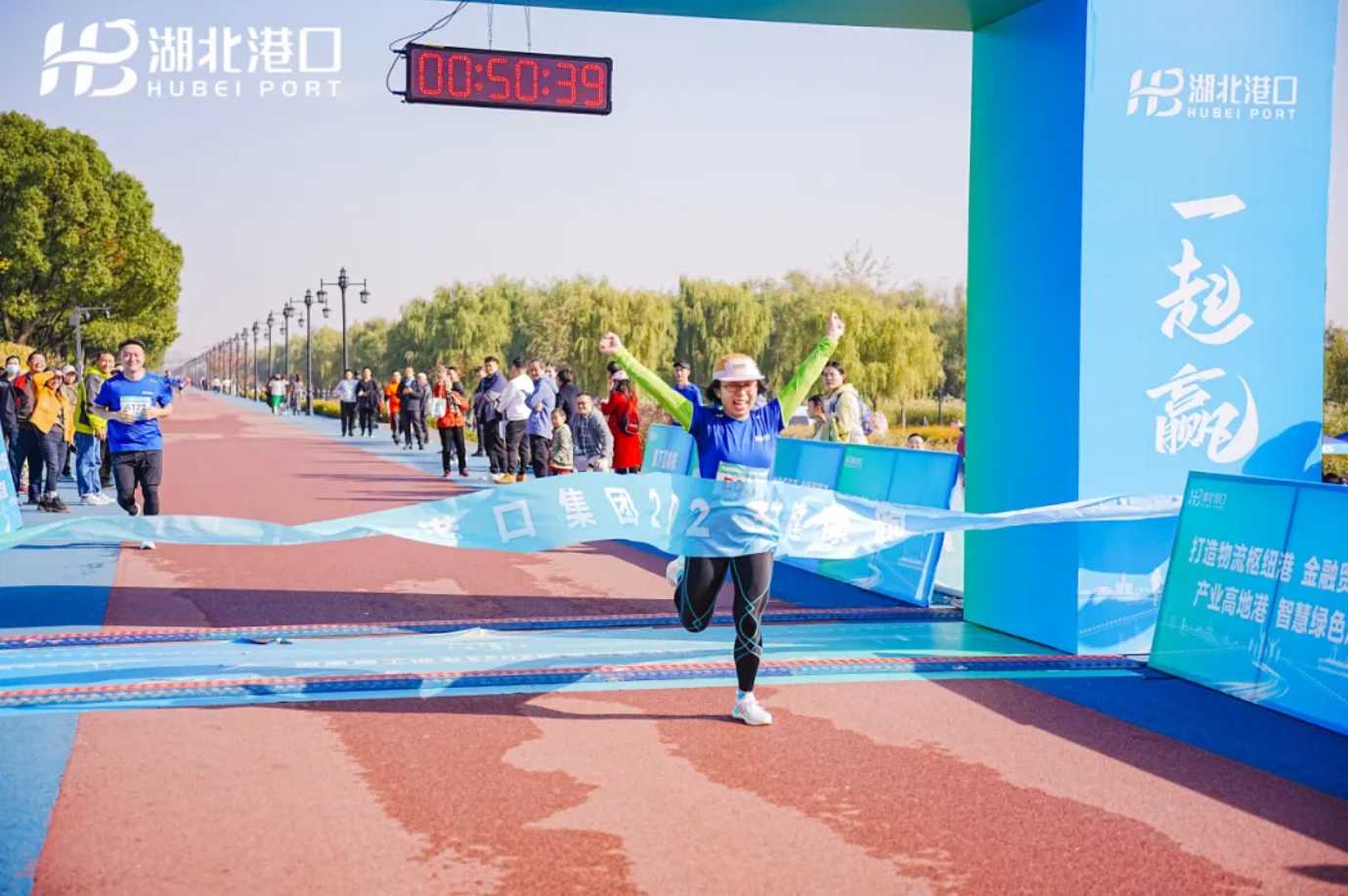 他们用脚步丈量江滩初冬美景,拼尽全力追逐远方的梦想,他们释放潜能、尽情驰骋、无所畏惧、畅意奔跑,享受奔跑的快乐,收获撞线的喜悦。